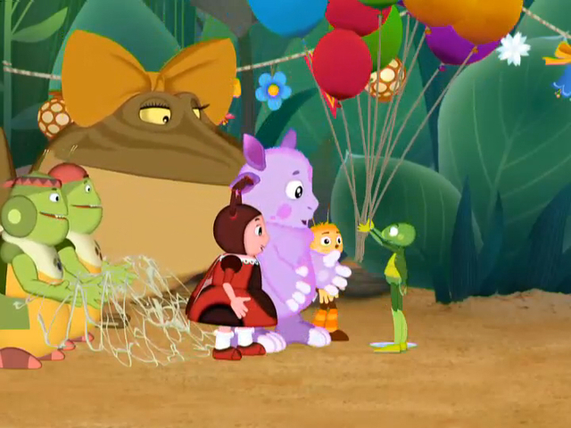 Лунтик и Мила решили подарить Кузе воздушные шарики. Но жаба Клава случайно проглотила все шарики и... полетела. Теперь Лунтик, Мила, Вупсень, Пупсень и Пчеленок должны догнать Клаву.