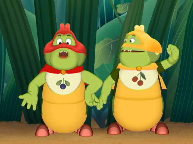 Гусеницы играют в супергероев. Лунтик тоже захотел стать супергероем.