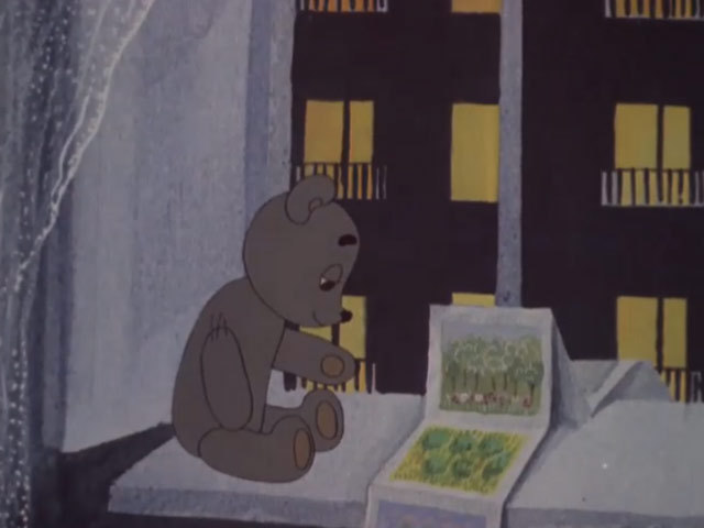 Девочка получает в подарок новую игрушку. Старый плюшевый мишка, чувствует себя ненужным и уходит от девочки.Режиссер: В. Самсонов.