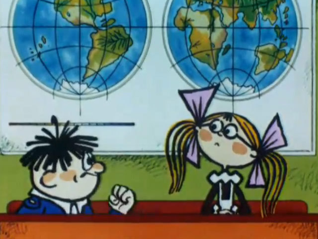 С помощью машины времени двоечник Лейкин решил досадить отличнице Знайкиной.Режиссер: В. Угаров.