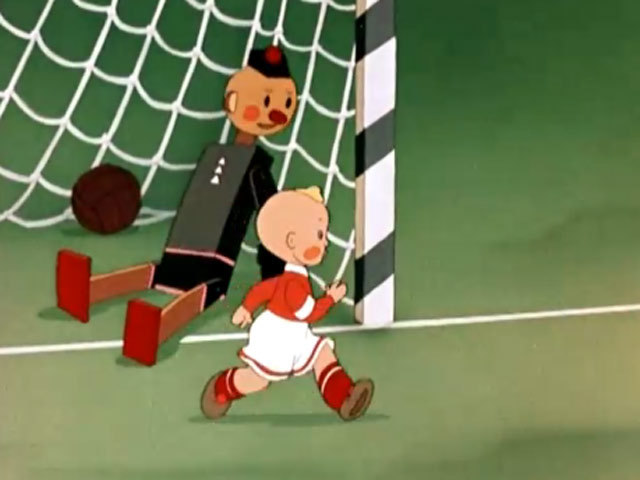 Столкновение двух игрушечных футбольных команд.Режиссер: Б. Дежкин, М. Пащенко.