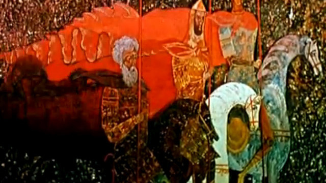 Сказание о невидимом граде Китеже и деве Февронии с использованием старинной русской миниатюры и фресковой живописи.Режиссеры: Иванов-Вано И. Норштейн Ю.