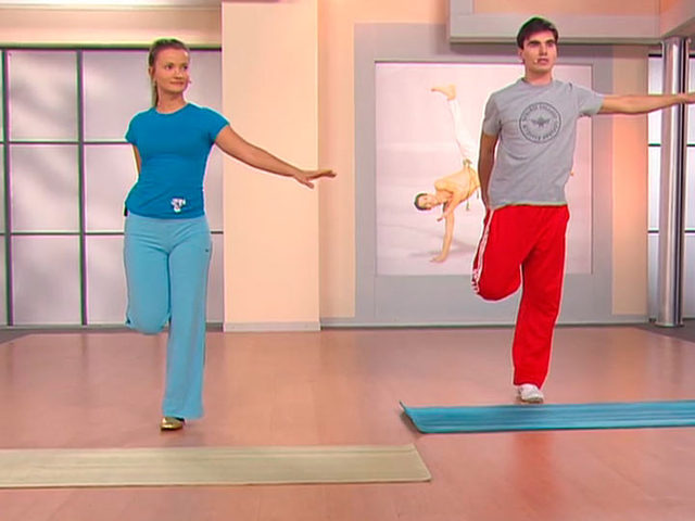 15-минутный цикл упражнений позволяет не только стряхнуть усталость, но и существенно повысить свой тонус. Никаких специальных приспособлений и оборудования для «Экспресс-фитнеса» не требуется, необходимо разве что немного свободного места перед экраном телевизора.Тренеры Наталья Лебедева и Олег Лоборев.Выпуск 13.