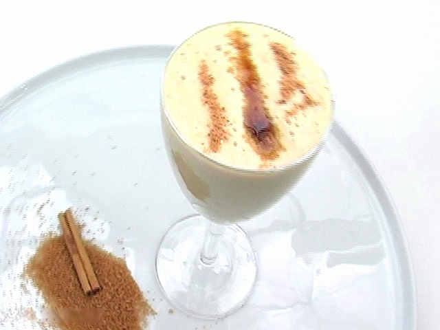 Легкий и сладкий завтрак для каждого.Состав:мускатный орех — 1 щепотка;бананы — 2 штуки;мед — 1 столовая ложка;апельсиновый сок — 1стакан;йогурт — 1 порция;немного миндаля и тросникового сахара.